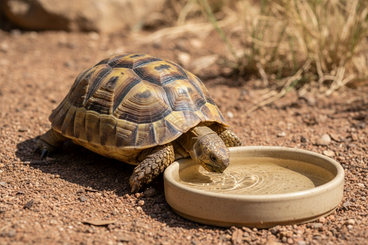 Tortoises can be bathed a few times a week in shallow water to encourage hydration.