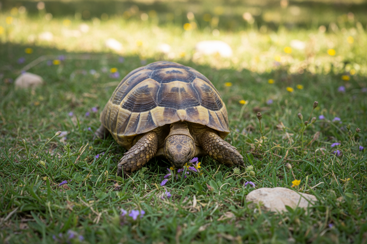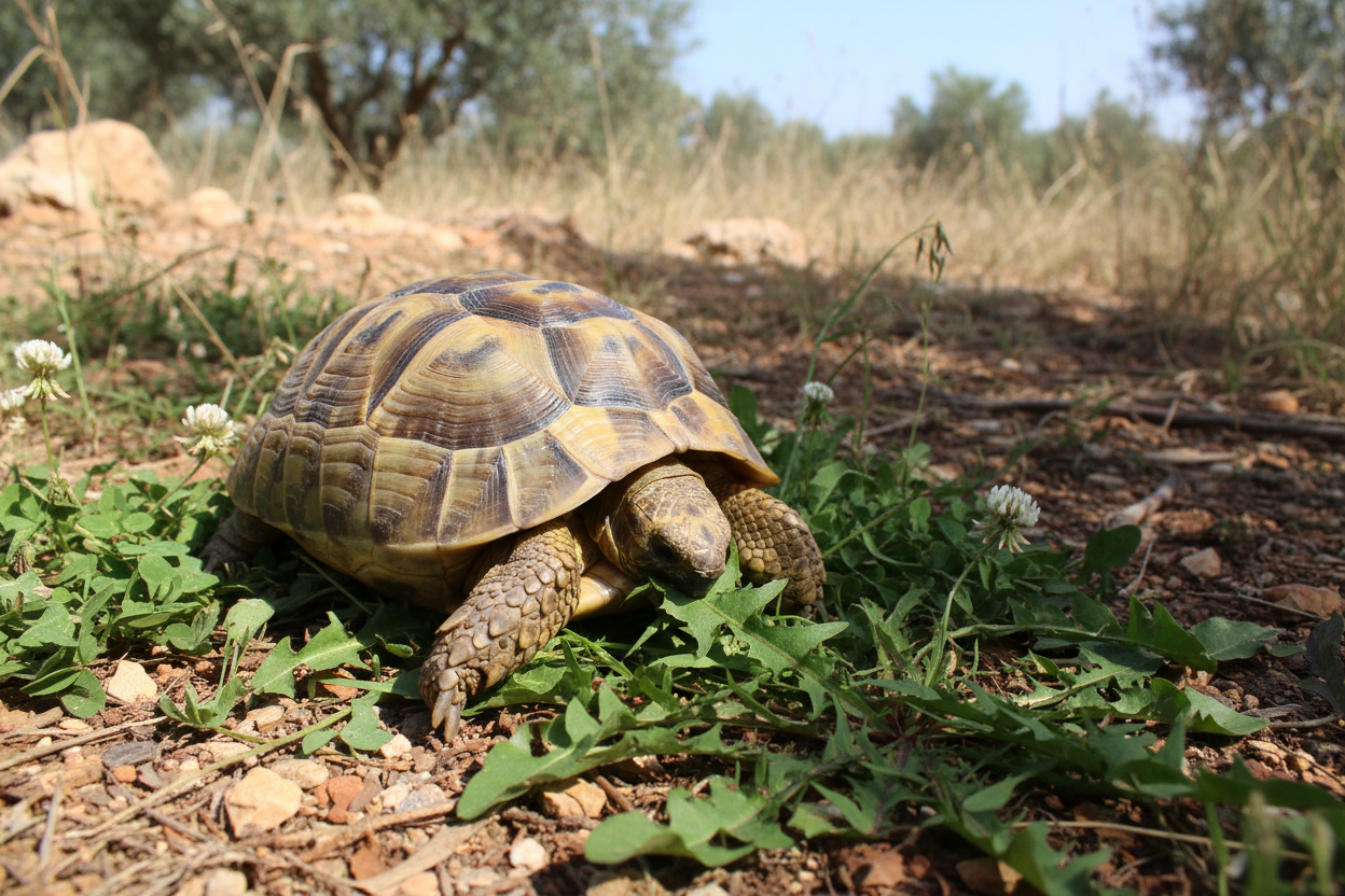 The Greek Spur-Thighed Tortoise (Testudo graeca) is a classic Mediterranean species often kept in the UK. In the wild it ranges across southern Europe and North Africa, adapted to seasonal climates with dry summers and mild winters.