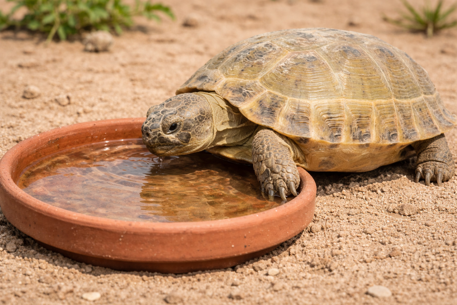 Tortoises can be bathed a few times a week in shallow water to encourage hydration.