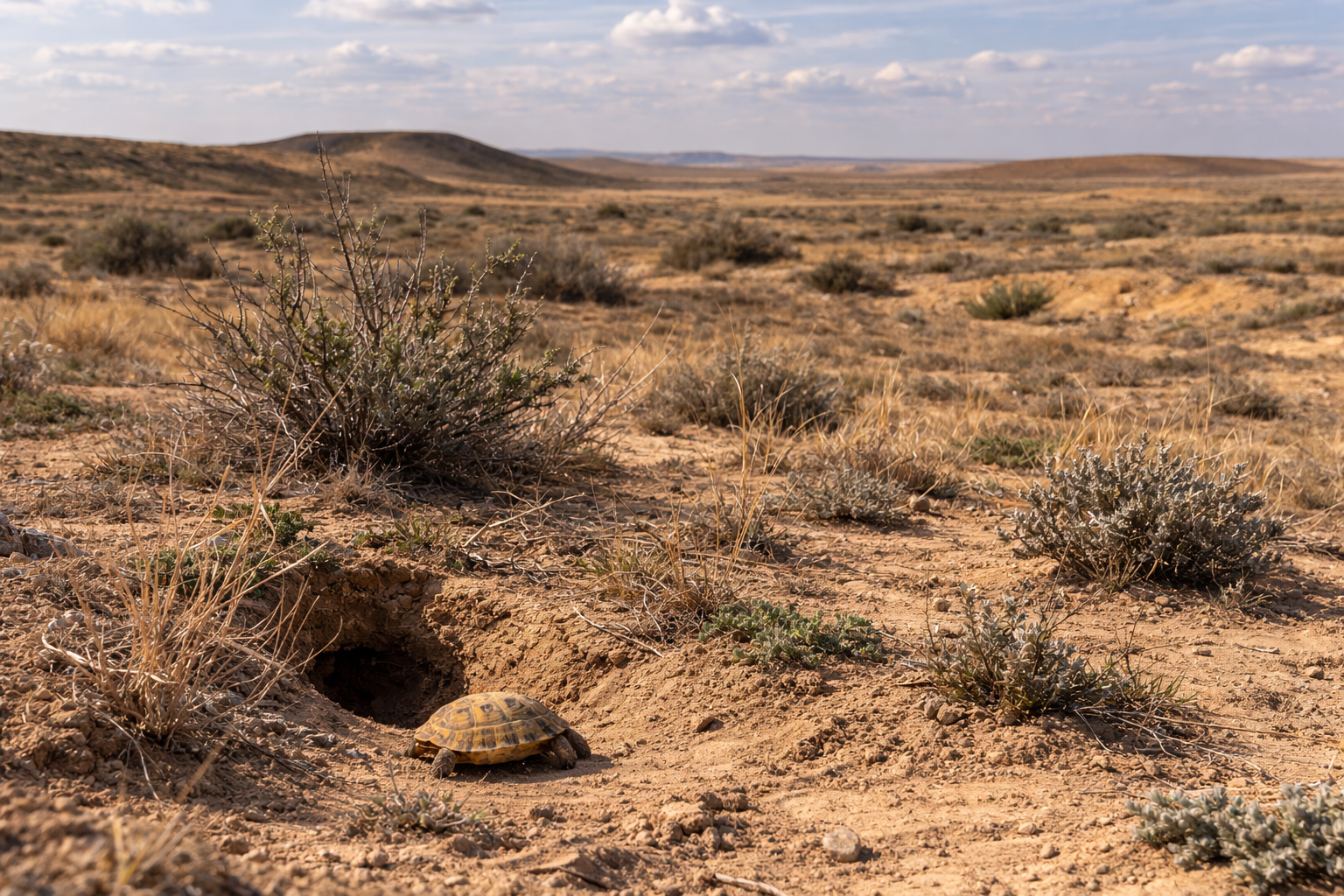 The Russian tortoise, also known as the Horsfield’s tortoise, is native to Central Asia. Unlike Mediterranean species, they experience more extreme seasonal changes, including very hot summers and cold winters.