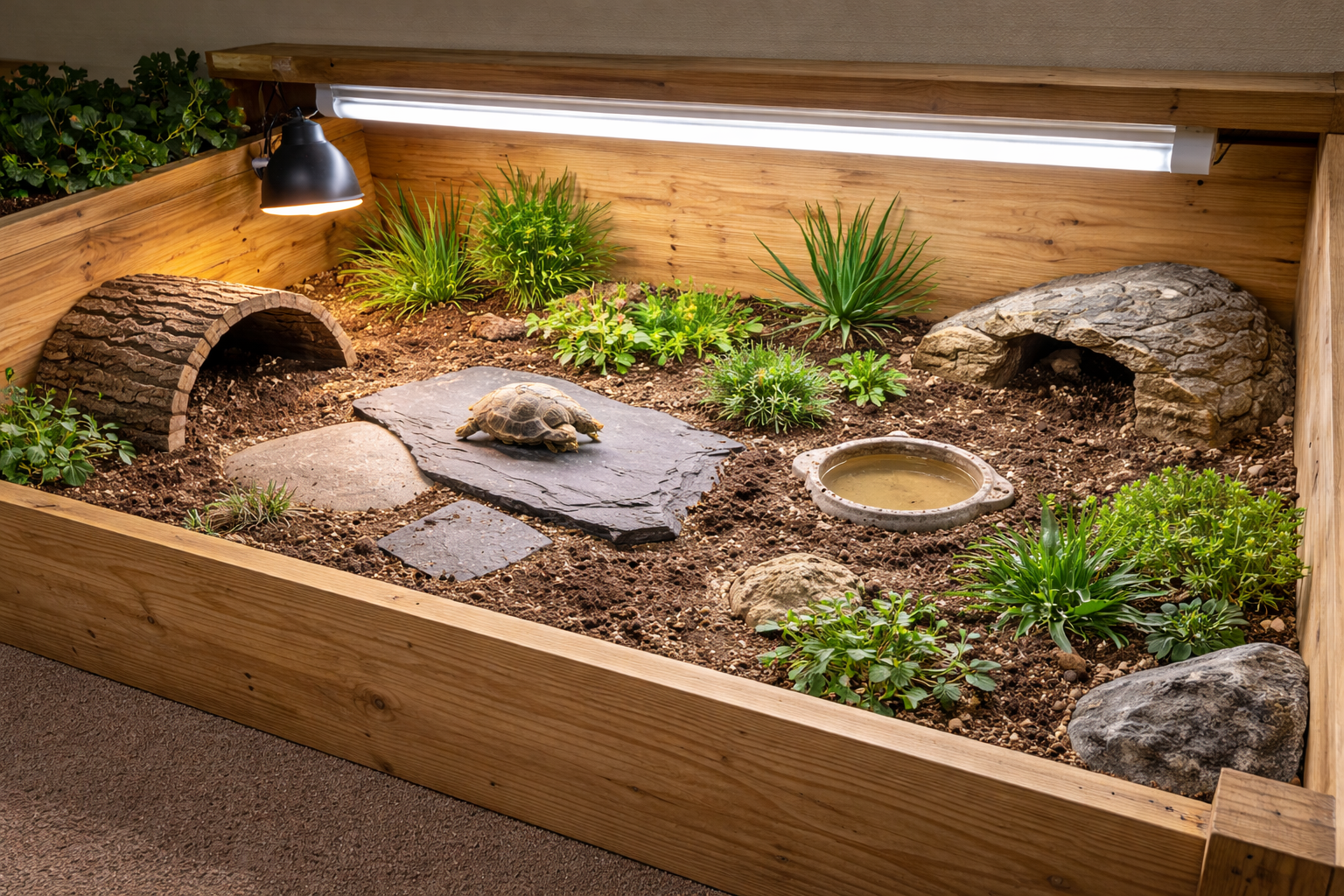 - Open-topped tortoise table (not glass vivarium)